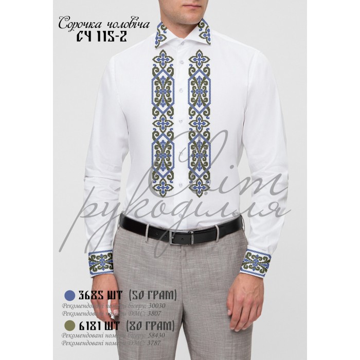 Заготовка для самостійного вишивання чоловічої сорочки. Друк схеми на тканині. Під вишивку бісером та нитками.