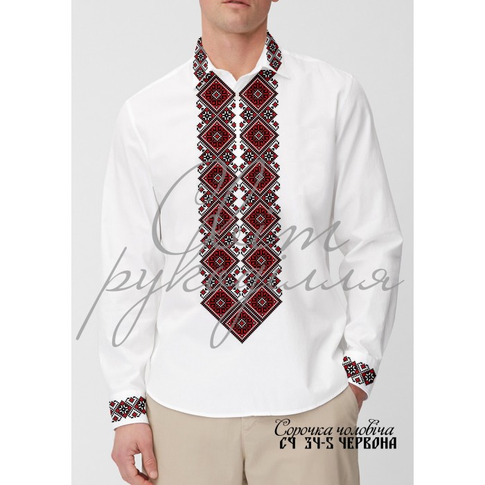Заготовка для самостійного вишивання чоловічої сорочки. Друк схеми на тканині. Під вишивку бісером та нитками.