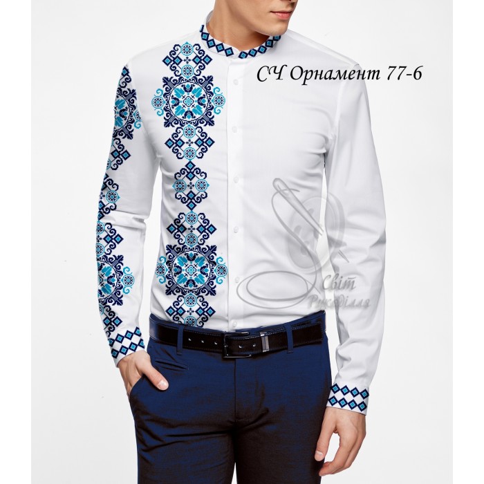 Заготовка для самостійного вишивання чоловічої сорочки. Друк схеми на тканині. Під вишивку бісером та нитками.