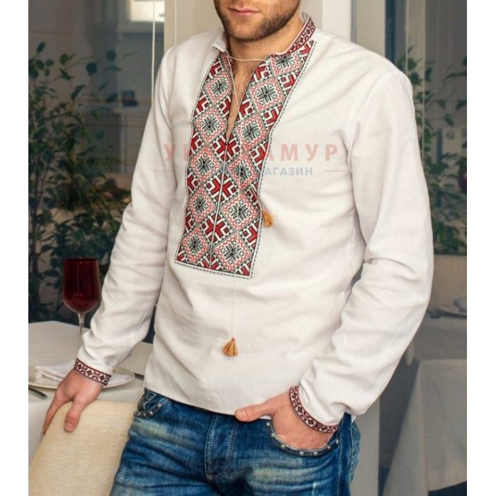 Заготовка для самостійного вишивання чоловічої сорочки. Друк схеми на тканині. Під вишивку бісером та нитками.