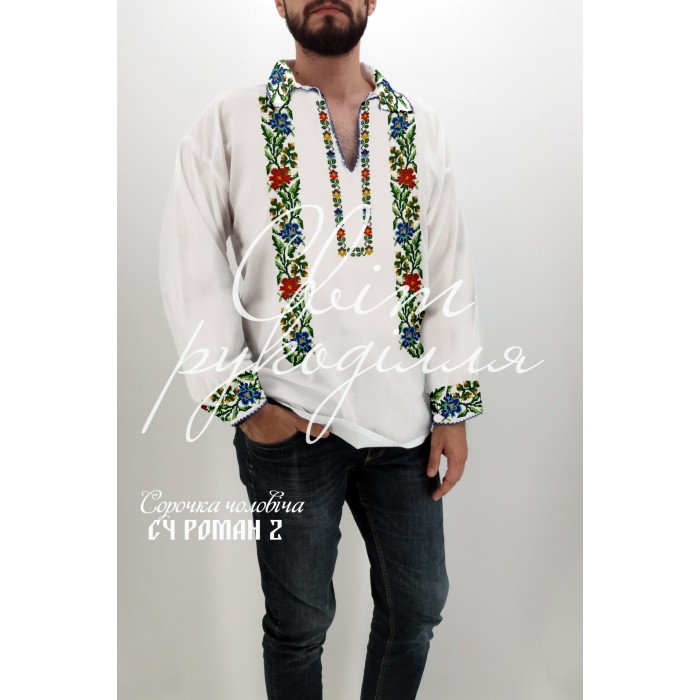 Заготовка для самостійного вишивання чоловічої сорочки. Друк схеми на тканині. Під вишивку бісером та нитками.