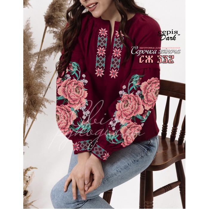 Заготовка для самостійного вишивання жіночої блузи. Друк схеми на тканині. Під вишивку бісером та нитками.