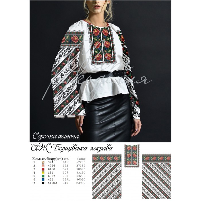Заготовка на жіночу сорочку "Борщівська яскрава"