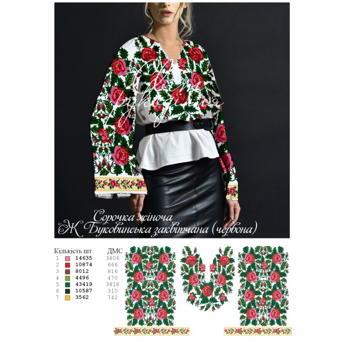 Заготовка на жіночу сорочку "Буковинська заквітчана (червона)"
