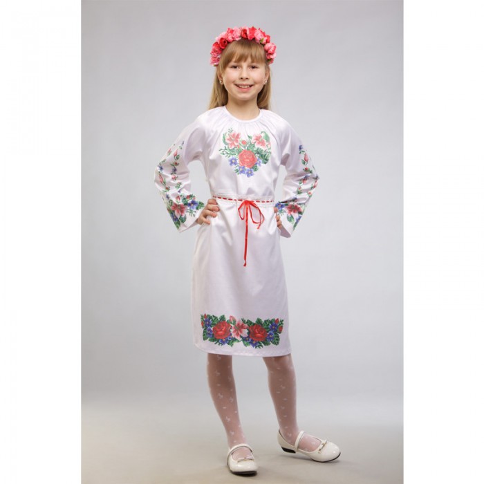 Заготовка дитячого плаття на 9-12 років "Лілеї, троянди, незабудки" для вишивки бісером (ПД014кБ40нн)