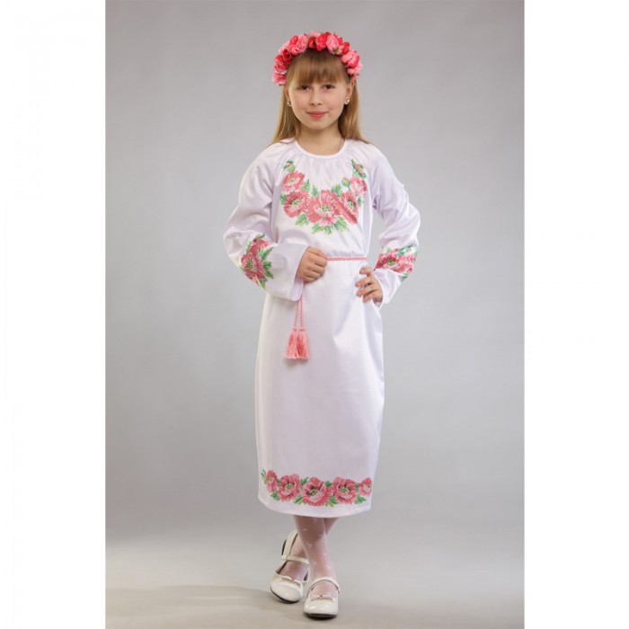 Заготовка дитячого плаття на 9-12 років "Маки рожеві" для вишивки бісером (ПД015кБ40нн)