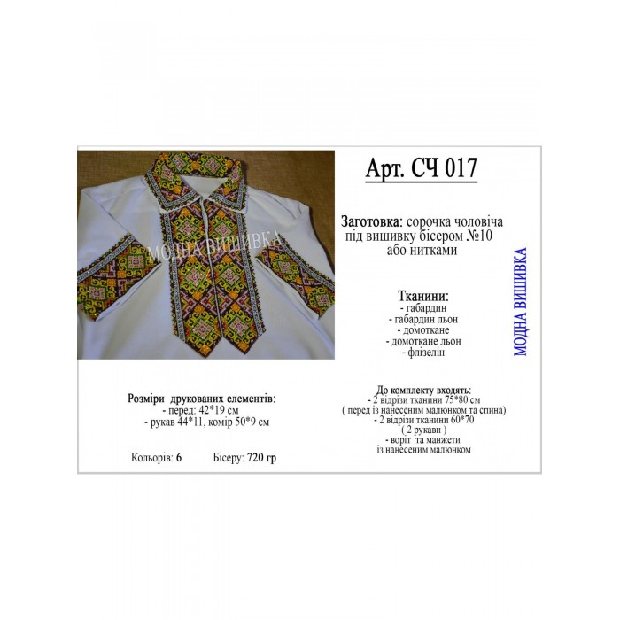 Заготовка під вишивку "Сорочка чоловіча СЧ-017"