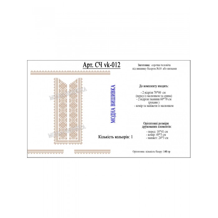Заготовка під вишивку "Сорочка чоловіча СЧ-VK-12"