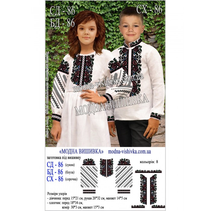 Заготовка на тканині для сорочки для дівчинки з нанесеною кольоровою схемою, що не змивається і не линяє при пранні.