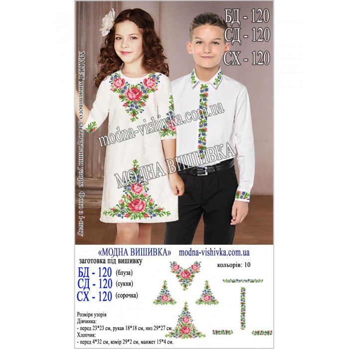 Заготовка на тканині для сорочки для дівчинки з нанесеною кольоровою схемою, що не змивається і не линяє при пранні.