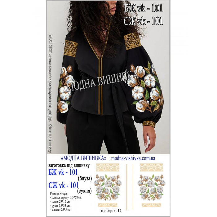 Заготовка на тканині для сорочки жіночої з нанесеною кольоровою схемою, що не змивається і не линяє при пранні.Тип тканини та також колір можна вибрати в опціях товару. Кольори тканин можна переглянути на фото тканин.