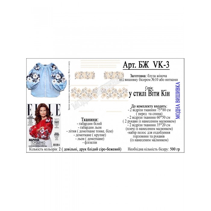 Заготовка на тканині для сорочки жіночої з нанесеною кольоровою схемою, що не змивається і не линяє при пранні.