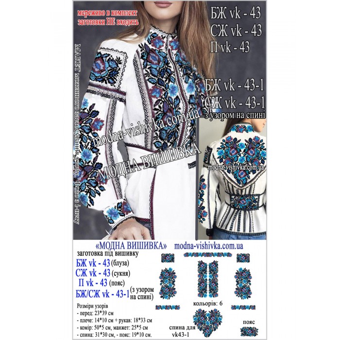 Заготовка на тканині для сорочки жіночої з нанесеною кольоровою схемою, що не змивається і не линяє при пранні.