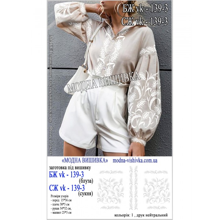 Заготовка під вишивку "Сукня жіноча СЖ-VK-139-3"