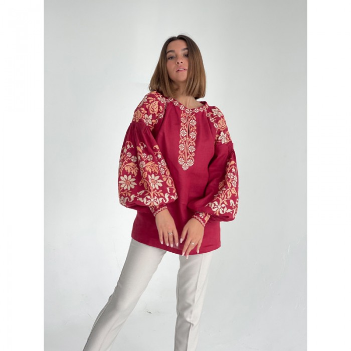 Не пошита заготовка жіночої блузки – вишиванки (Ukrainian boho) з нанесеним малюнком для вишивання нитками.