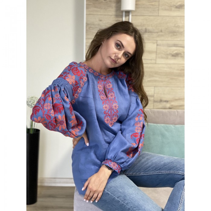 Не пошита заготовка жіночої блузки – вишиванки (Ukrainian boho) з нанесеним малюнком для вишивання нитками.