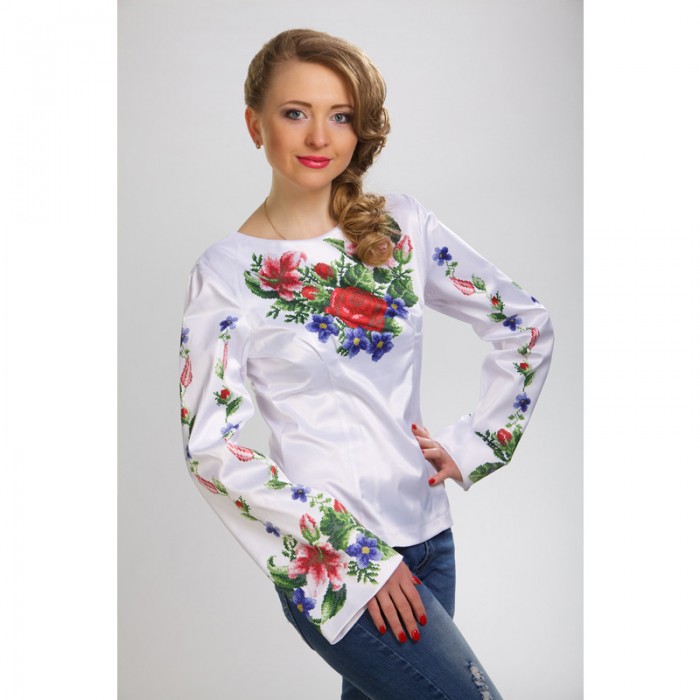 Заготовка жіночої вишиванки "Лілеї, троянди, незабудки" для вишивки бісером (БЖ036кБнннн)