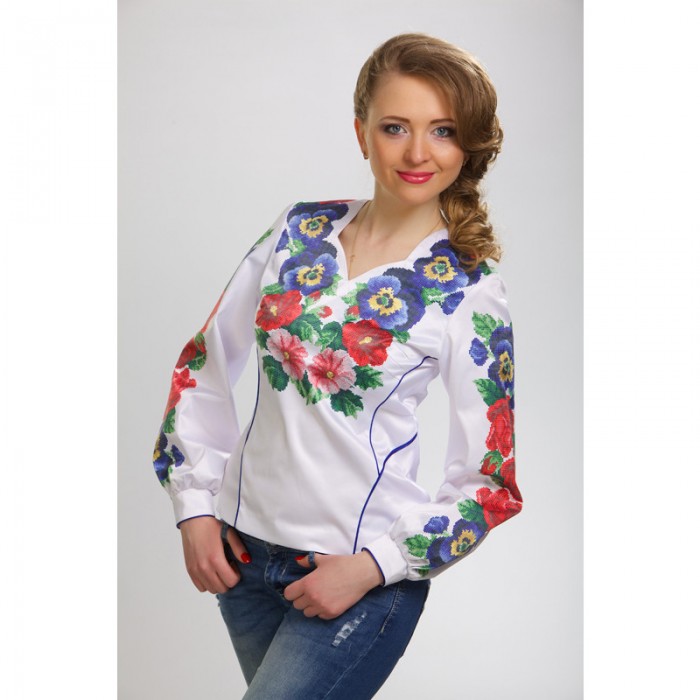 Заготовка жіночої вишиванки "Троянди, братчики, мальви" для вишивки бісером (БЖ056кБнннн)