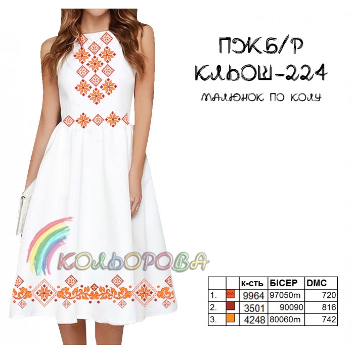 Заготовки під вишивку жіночих суконь можуть включати різноманітні елементи для вишивки, наприклад, великі квіткові орнаменти, геометричні візерунки або незвичайні мотиви. Вони можуть мати різні розміри, що дозволяє підібрати відповідний для будь-якої фізіології жіночий образ.